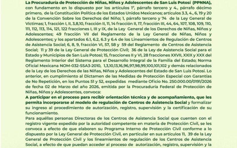 El Ayuntamiento de Soledad de Graciano Sánchez convoca a las familias a participar en una Convivencia Atlética 3k este domingo...