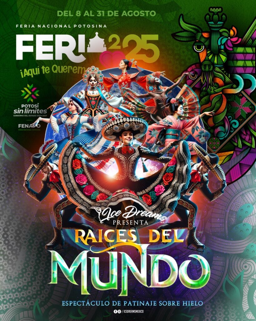 Por iniciativa del Gobernador Ricardo Gallardo Cardona, la Feria Nacional Potosina (Fenapo) presentará el estreno mundial de “Raíces del Mundo”, un espectáculo sin precedentes de patinaje sobre hielo que fusiona danza folclórica internacional, música tradicional y deporte artístico. Esta experiencia única, a cargo de la reconocida empresa Ice Dreams México, se ofrecerá de forma gratuita del 8 al 31 de agosto para todas las familias potosinas y visitantes.