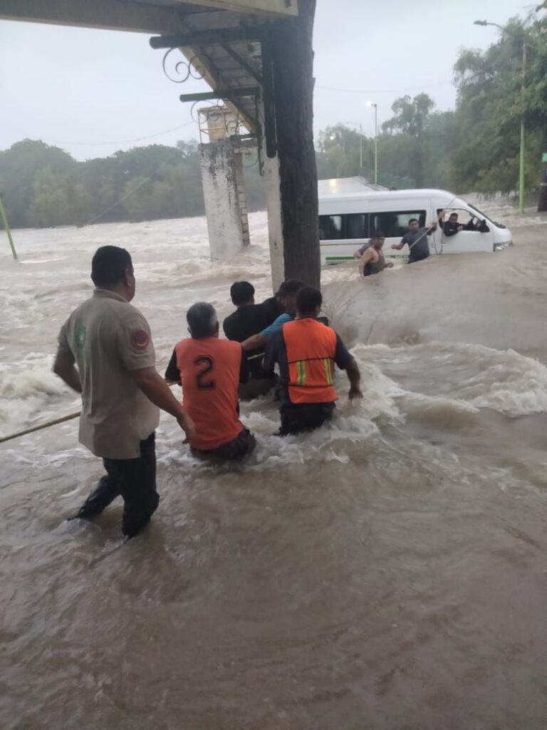 La Coordinación Estatal de Protección Civil reiteró el llamado a la población de atender las recomendaciones de evitar ingresar a pie o en vehículo en las bajadas de ríos, ya que este domingo personal de la dependencia estatal en coordinación con Protección Civil de Ciudad Valles y Bomberos apoyaron a conductor de urban que de manera imprudente intentó cruzar el rio Valles en la colonia Juárez.