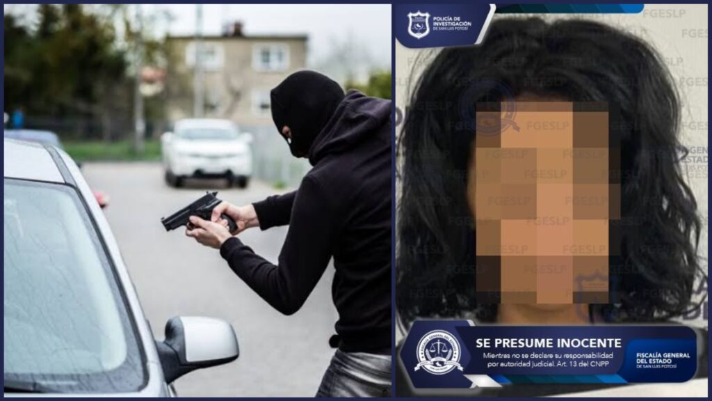 La FGESLP informó que la imputada se encontraba bajo investigación, tras ser señalada de despojar a la víctima de su automóvil y pertenencias personales, después de que la habría amagado con un arma de fuego, en la Zona Metropolitana potosina.