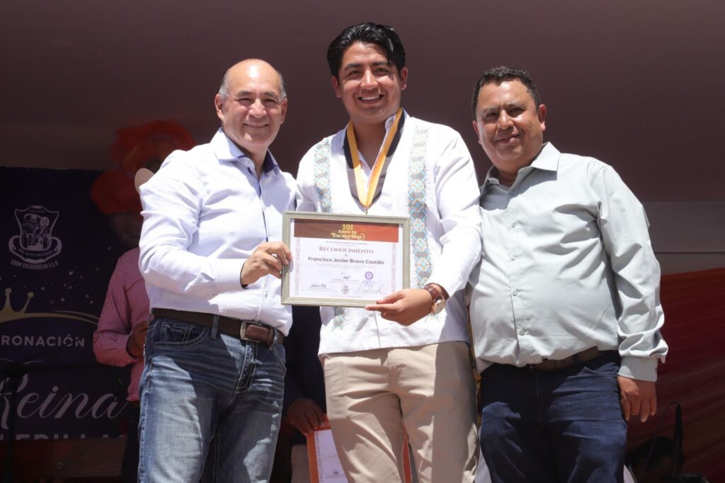 Acompañado por el Presidente del Comisariado Ejidal, José Ramón Moreno Valero, el Alcalde entregó reconocimientos a expresidentes del comisariado, como parte del homenaje a quienes han contribuido al desarrollo de Escalerillas. También señaló que la mejor manera de conmemorar su fundación es con trabajo, obras y atención directa a sus necesidades, lo cual —afirmó— seguirá siendo prioridad para su administración.