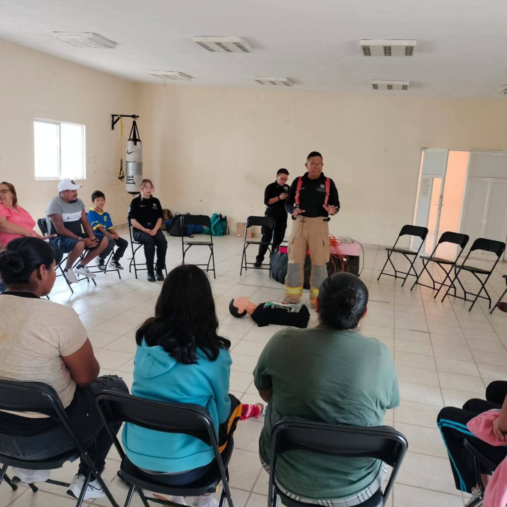 Durante la jornada, las y los asistentes recibieron capacitación práctica en temas fundamentales como primeros auxilios, búsqueda y rescate, evacuación segura y combate contra incendios, para fortalecer así sus conocimientos y habilidades para responder de manera efectiva ante contingencias.
