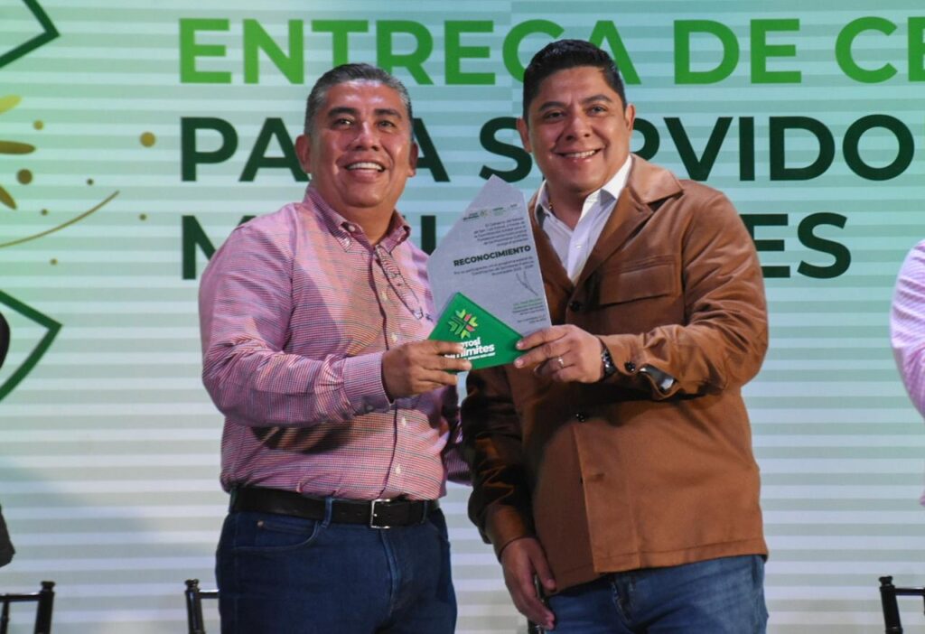 En una ceremonia liderada por el Gobernador del Estado, Ricardo Gallardo Cardona, el Presidente municipal de Soledad de Graciano Sánchez, Juan Manuel Navarro Muñiz recibió el reconocimiento por parte de la Coordinación Estatal para el Fortalecimiento Institucional de los Municipios (CEFIM), que avala la certificación de funcionariado de áreas claves del Ayuntamiento, en temas estratégicos para promueven un servicio público cercano, resolutivo y de inmediatez a la población.