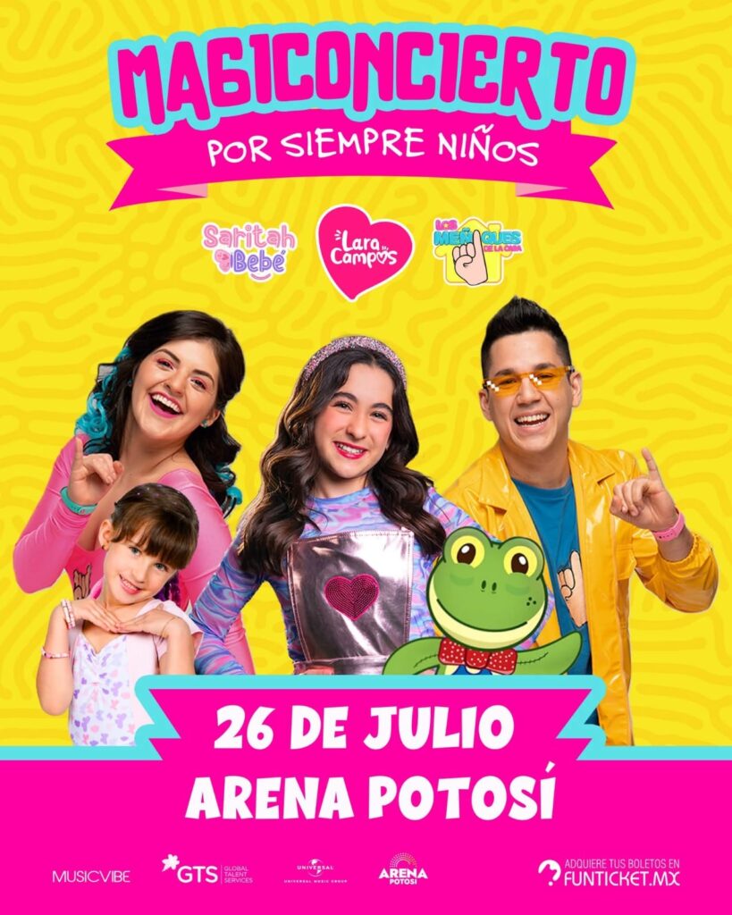 La magia y alegría llegarán a la Arena Potosí el 26 de julio con el Magiconcierto de Lara Campos, Los Meñiques de la Casa y Saritah Bebé, quienes llenarán el escenario de música y energía para que los más pequeños de la casa disfruten sin límites junto a sus familias.