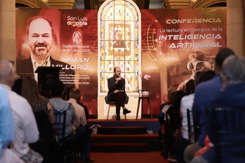 Con una asistencia récord para un evento literario en Palacio Municipal, el escritor Juan Villoro ofreció la conferencia “La lectura en tiempos de la inteligencia artificial”, en la que reflexionó sobre cómo el orden digital ha transformado la vida moderna a una velocidad que rebasa nuestra capacidad de asimilación. Dijo que la tecnología es una gran herramienta, pero también puede ser peligrosa si se convierte en sustituto de la inteligencia humana: “Leer nos hace humanos”, señaló con agudeza.