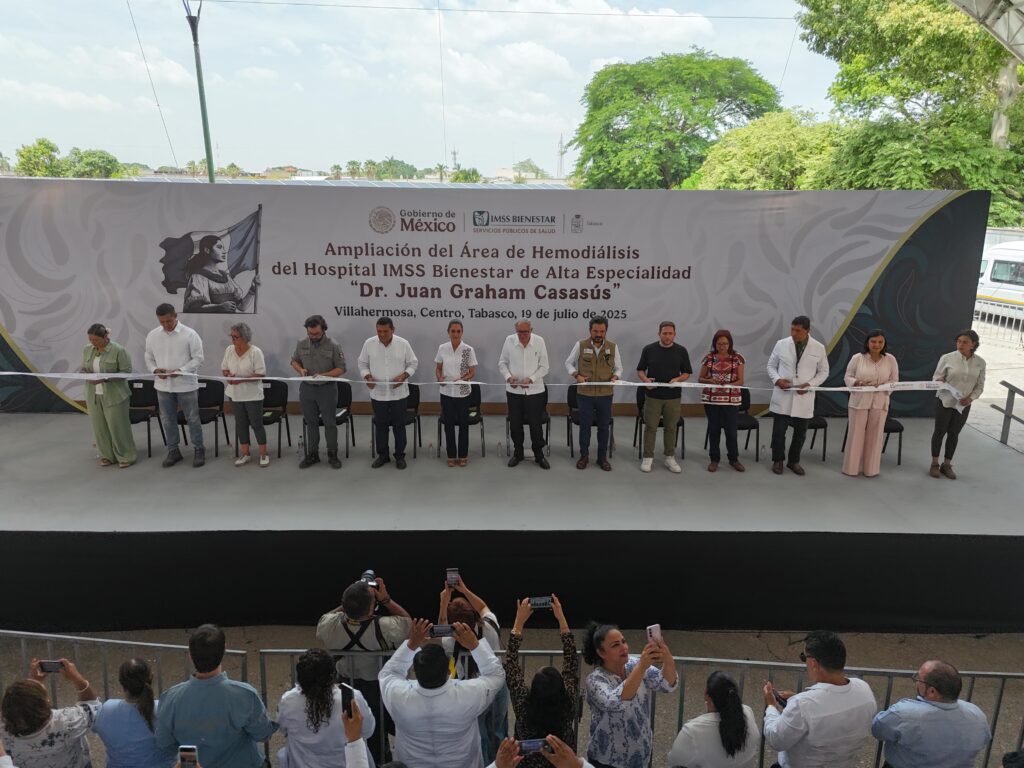 Desde Tabasco, la Presidenta Claudia Sheinbaum Pardo inauguró la ampliación de la sala de hemodiálisis en el Hospital Regional de Alta Especialidad del IMSS Bienestar “Dr. Juan Graham Casasús” de Villahermosa y anunció una inversión adicional de 2 mil millones de pesos (mdp) para fortalecer el sistema de salud en esta entidad.