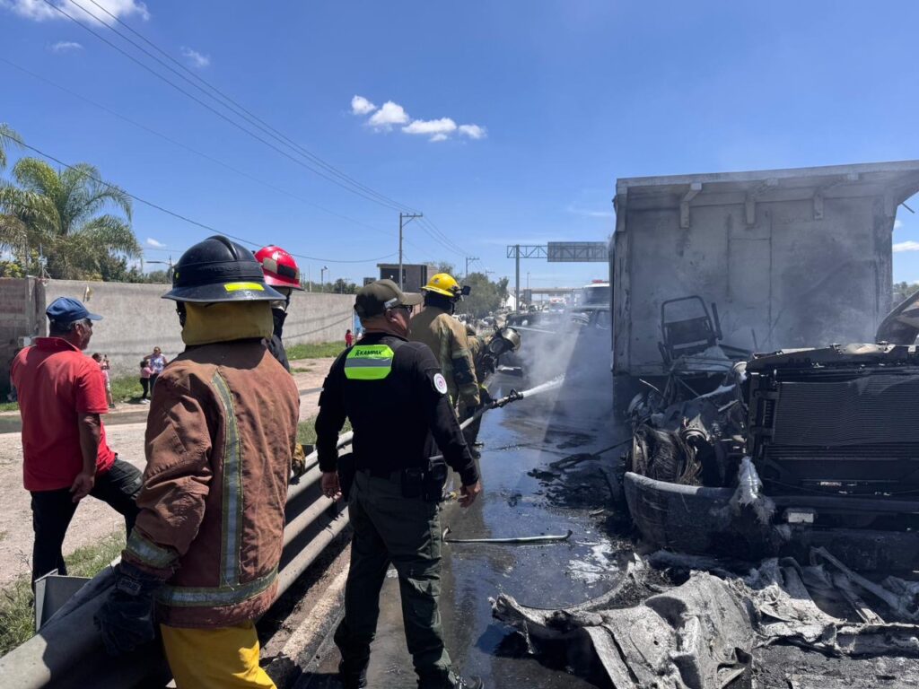 Personal de diversas áreas del Ayuntamiento de Soledad de Graciano Sánchez, atendió un fuerte accidente registrado, esta mañana, en la carretera a Matehuala a la altura de la comunidad Cándido Navarro, en colaboración con otras instituciones de prevención, seguridad y rescate.