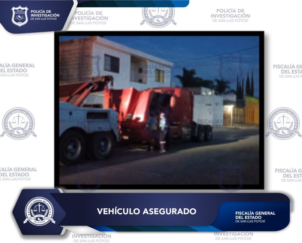 El vehículo asegurado, de la marca Kenworth y color rojo, se encontraba aparentemente en estado de abandono sobre calles de la colonia Genovevo Rivas Guillén, en el municipio de Soledad de Graciano Sánchez. En el lugar, se realizaron las maniobras necesarias para su traslado a una pensión vehicular.