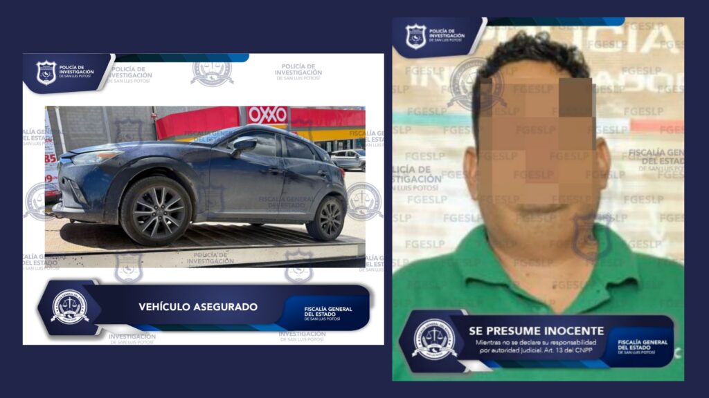 La Fiscalía General del Estado de San Luis Potosí (FGESLP) informa sobre la detención en flagrancia de Óscar “N”, por su probable responsabilidad en el delito de robo equiparado, en la modalidad de conducción de vehículo con reporte de robo vigente.