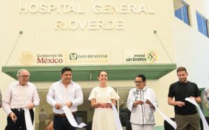 En Ríoverde, en San Luis Potosí, la Presidenta Claudia Sheinbaum Pardo inauguró la torre de imagenología, laboratorio y hemodiálisis del...