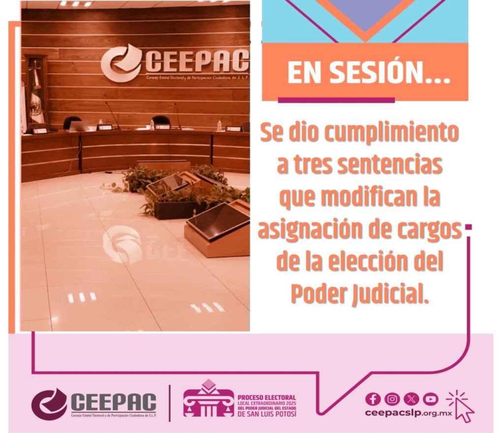 En sesión extraordinaria el Consejo General del Consejo Estatal Electoral y de Participación Ciudadana (CEEPAC) de la elección de personas juzgadoras del Poder Judicial, dio cumplimiento a las sentencias dictadas por el Tribunal Electoral del Estado.