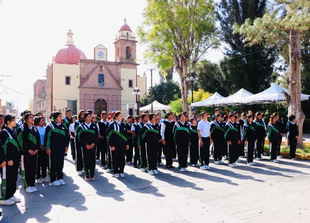 El Gobierno Municipal de Villa de Pozos llevó a cabo una ceremonia de honores a la bandera en coordinación con la Guardia Nacional, el Ejército Mexicano, personal del Concejo y la comunidad estudiantil de la Preparatoria Carlos Jonguitud Barrios, en el marco de los lunes cívicos de proximidad social, en la plaza principal de la localidad.