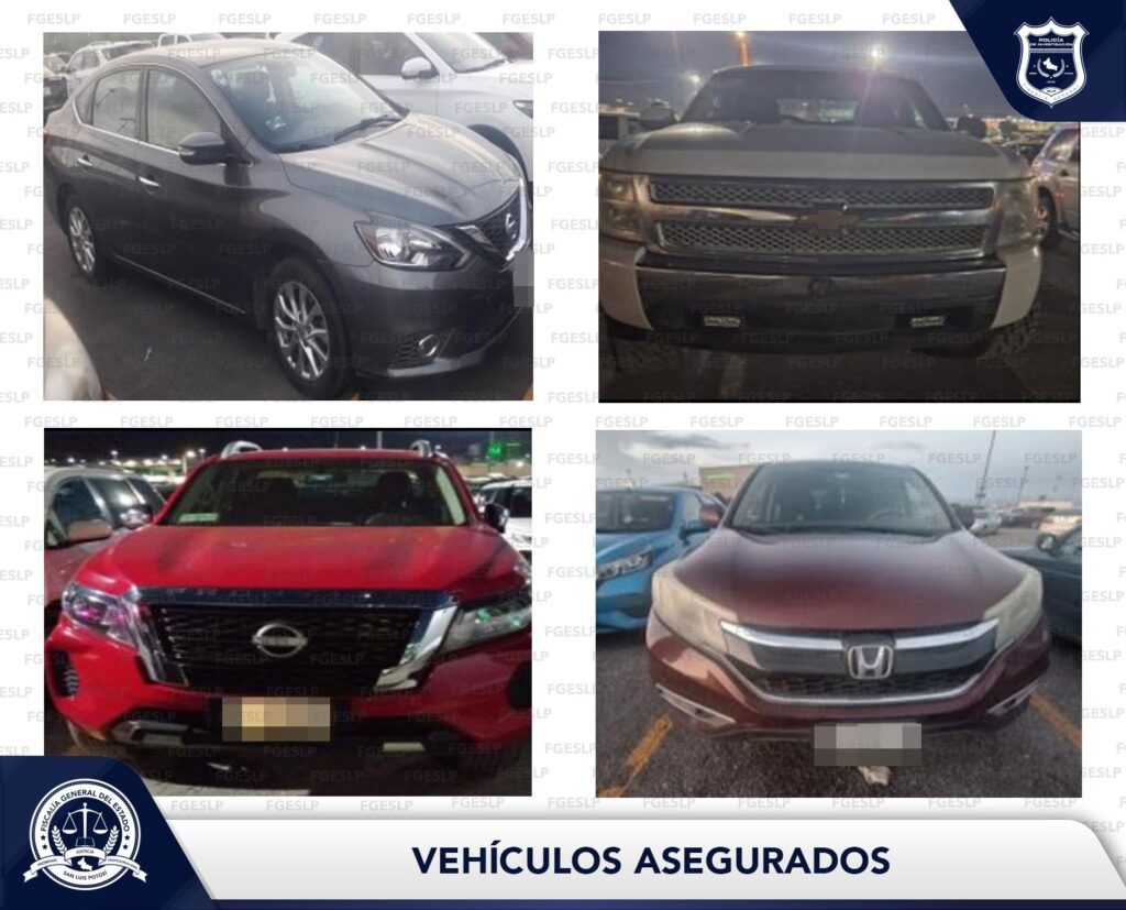 La Fiscalía General del Estado de San Luis Potosí (FGESLP), a través de las labores de la Policía de Investigación (PDI), aseguró cuatro vehículos durante la Feria Nacional Potosina (Fenapo), en el marco de las acciones de combate al robo de automotores.