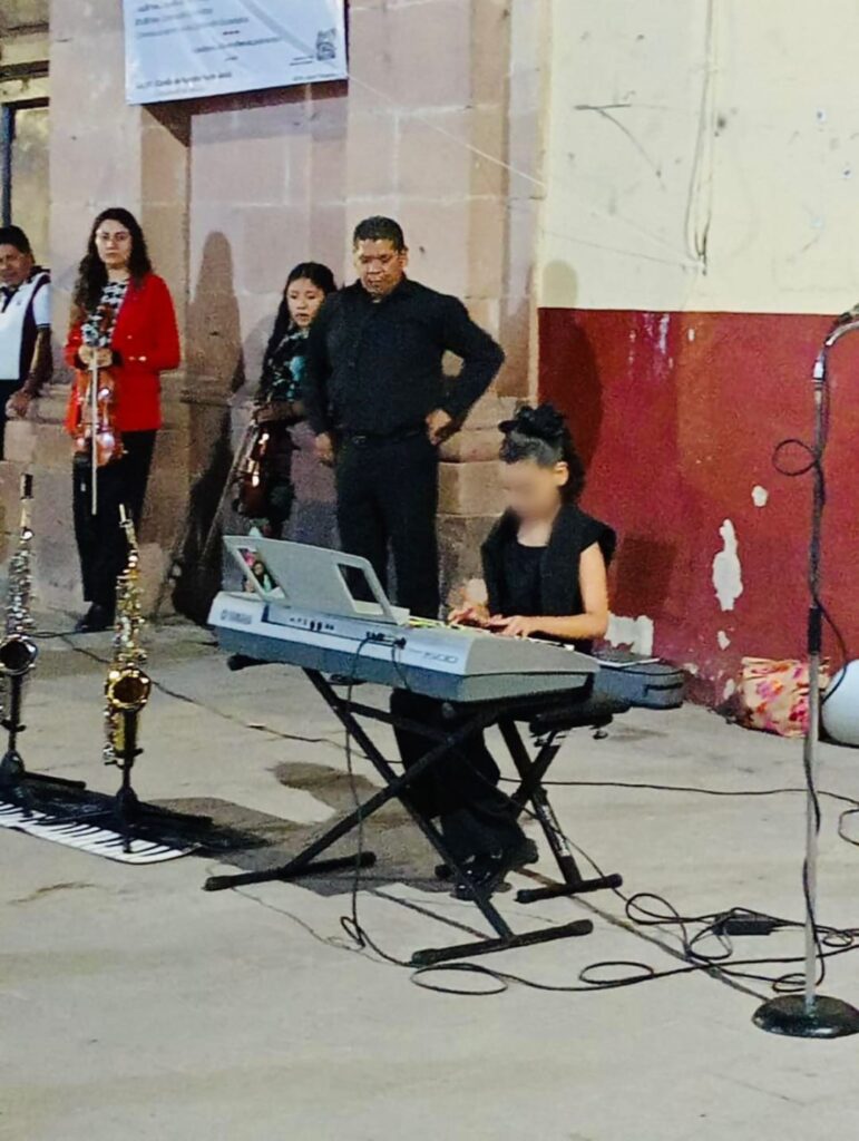 La cita tuvo lugar en el emblemático atrio de la Parroquia de San Francisco de Asís, un espacio que ofreció un escenario perfecto para la música y durante la presentación, las y los asistentes disfrutaron de diversas interpretaciones musicales que incluyeron instrumentos como saxofón, teclado y violín.