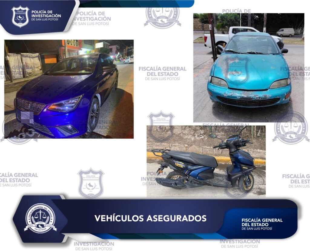 Las tres unidades quedaron en una pensión vehicular bajo resguardo de la FGESLP, que dará continuidad a los trámites correspondientes y, en su caso, a la devolución a sus legítimos propietarios.