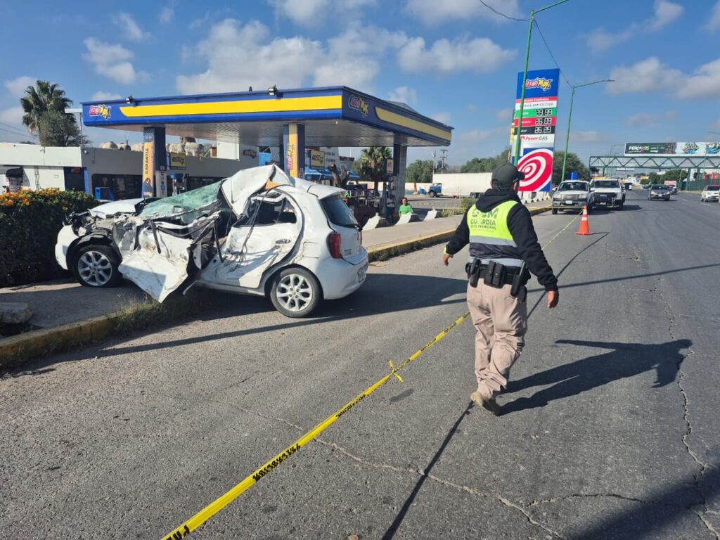 Personal de Seguridad Vial de la Guardia Civil Municipal de Soledad brindó apoyo en labores de abanderamiento y facilitó el flujo vehicular, tras registrarse un hecho de tránsito en la carretera a Matehuala, a la altura de La Constancia.
