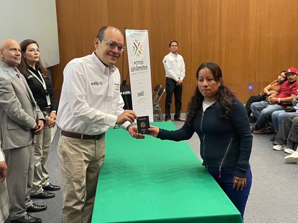 Con el respaldo sin límites del Gobierno del Estado que dirige Ricardo Gallardo Cardona, 60 personas fueron beneficiadas al recibir sus pasaportes e incorporarse al programa de pensión y seguro social de los Estados Unidos. Este apoyo garantiza una mejora en su calidad de vida, acceso a más oportunidades y reconocimiento por más de una década de trabajo en el país vecino.