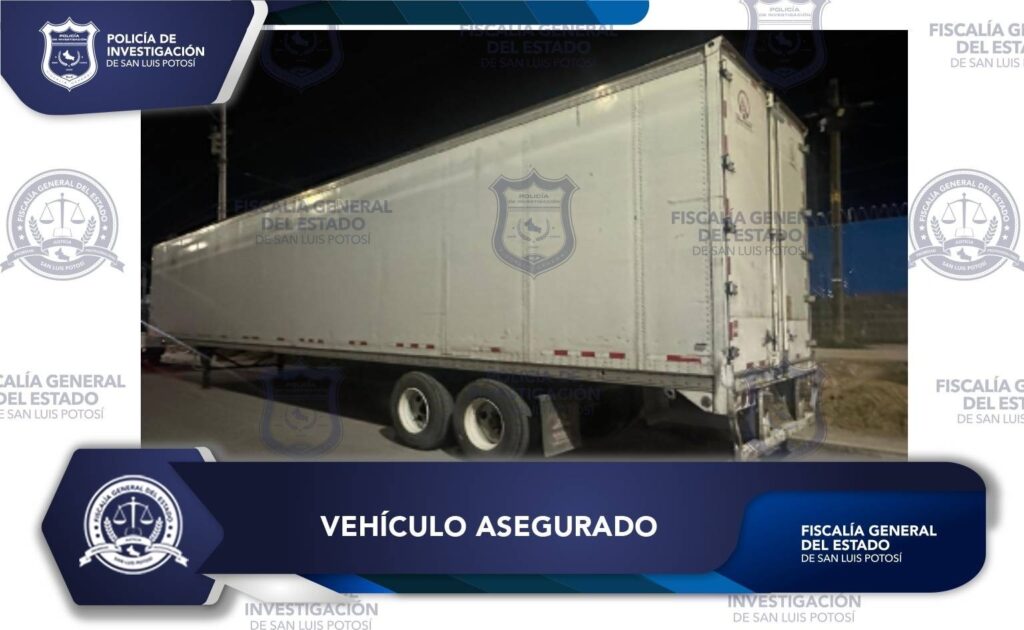 La Policía de Investigación (PDI) de la Fiscalía General del Estado de San Luis Potosí (FGESLP) aseguró un vehículo tipo caja seca, de la marca Wabash y color blanco, en la colonia Saucito de la capital potosina.
