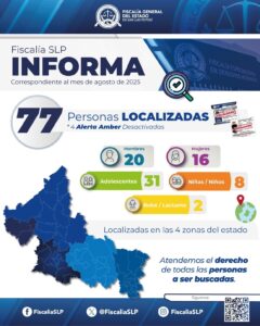 Durante el mes de agosto de 2025, la Fiscalía General del Estado de San Luis Potosí (FGESLP) mediante la Coordinación...