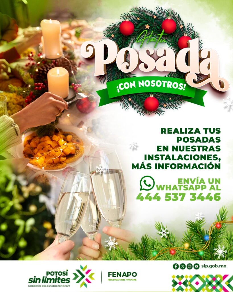 El Patronato de la Feria Nacional Potosina (Fenapo), encabezado por Fernando Rojo Ocejo, anunció que las instalaciones recientemente remodeladas del recinto ferial estarán disponibles para la realización de posadas, convivencias y reuniones de fin de año.