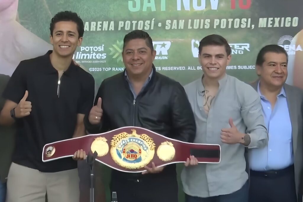 Desde la Arena Potosí se presentó la pelea entre el mexicano Rafael «Divino» Espinoza, campeón peso pluma de la Organización Mundial de Boxeo (OMB), y Arnold Khegai, boxeador ucraniano. El director de Zanfer Boxing, Guillermo Brito, agradeció el apoyo del Gobernador del Estado, Ricardo Gallardo Cardona, por darles la oportunidad de estar en San Luis Potosí. Resaltó que es una cartelera de gran nivel y que la Arena Potosí es un recinto más que digno para ver buen boxeo. Agregó que se contará con la presencia del mítico anunciador estadounidense, Jimmy Lennon Jr.