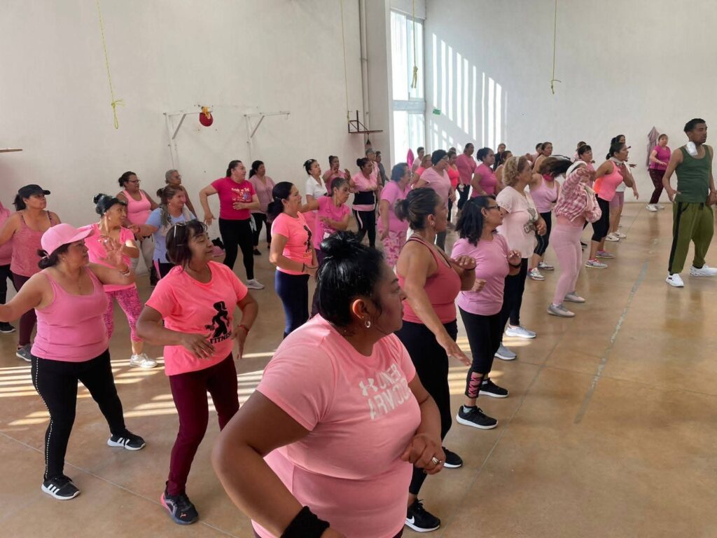Durante la activación, las participantes realizaron diversas rutinas de baile y ejercicios aeróbicos guiadas por instructores, quienes fomentaron un ambiente de unión y motivación, señaló Guerrero Salas quien resaltó que, con energía, buena actitud y mucha conciencia, las asistentes se unieron para recordar que la detección temprana salva vidas.