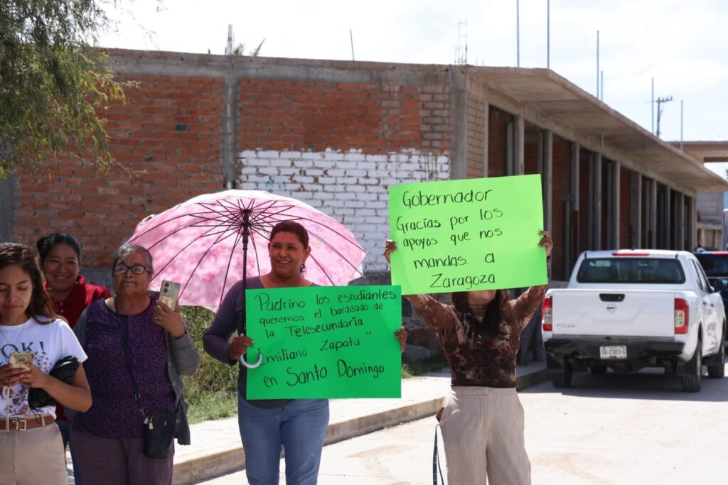 Autoridades municipales, docentes y habitantes de Zaragoza celebraron el apoyo del Gobernador del Estado Ricardo Gallardo Cardona, con el inicio de la carretera Zaragoza–Entronque Rioverde, el arranque de obras educativas en Cerro Gordo y las nuevas calles inauguradas en La Esperanza y Santo Domingo.