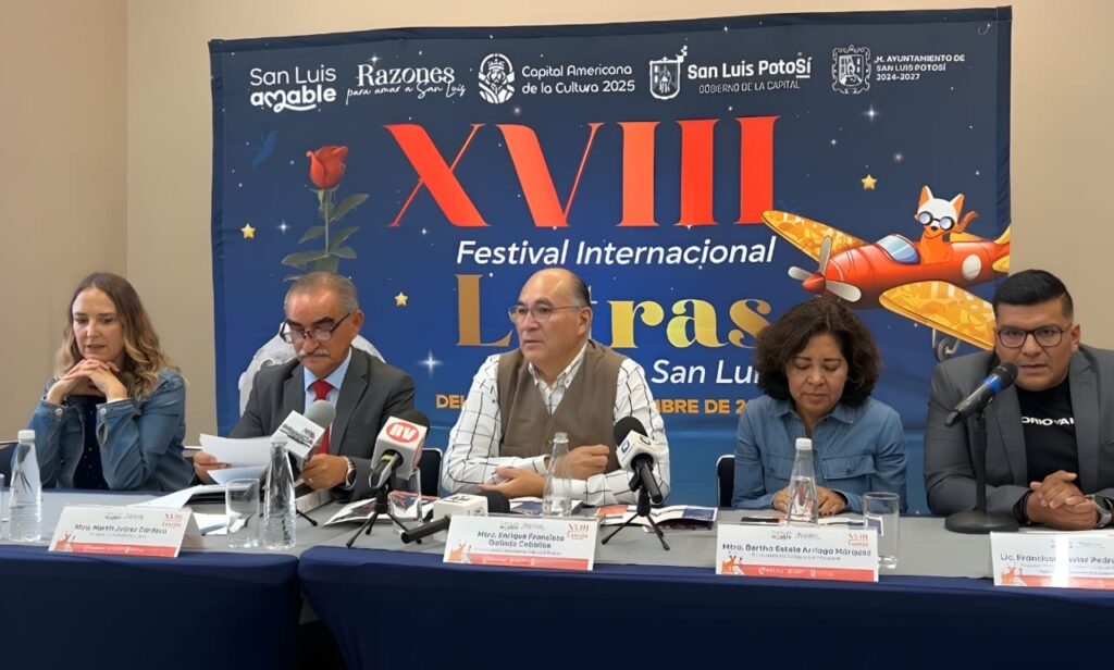 El Ayuntamiento de San Luis Potosí presentó la edición número 18 del Festival Internacional de Letras, evento que busca fortalecer el gusto por la lectura y la escritura mediante la participación de destacados autores nacionales e internacionales.