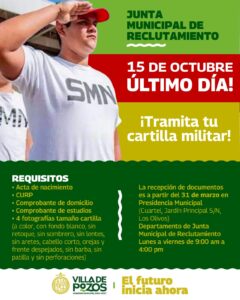 El Gobierno Municipal de Villa de Pozos, a través de la Junta Municipal de Reclutamiento, invita a los jóvenes varones...