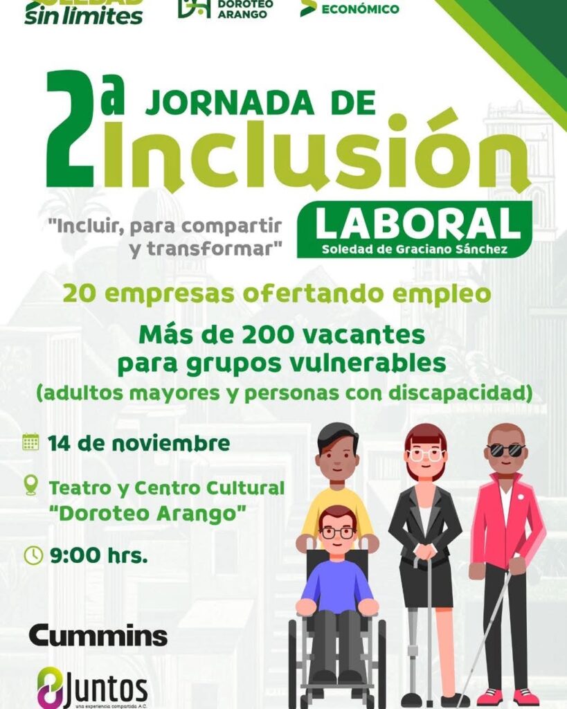 El Ayuntamiento de Soledad de Graciano Sánchez realizó la presentación oficial de la Segunda Jornada de Inclusión Laboral, con la finalidad de acercar oportunidades de empleo a personas con discapacidad y a grupos en situación de vulnerabilidad. La directora operativa de Juntos A.C., Alejandra García, destacó que es un orgullo colaborar con un gobierno sensible y comprometido con la inclusión, y reconoció al alcalde Juan Manuel Navarro por abrir espacios laborales para todos los soledenses.