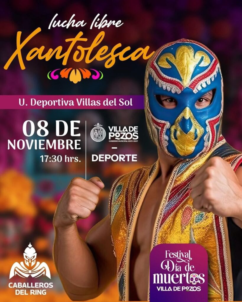 En el marco del cierre de actividades por los festejos de Día de Muertos, el Gobierno Municipal de Villa de Pozos, a través de la Dirección de Deporte, llevará a cabo la función de “Lucha Libre Xantolesca” el próximo 8 de noviembre a las 17:30 horas en la Unidad Deportiva Villas del Sol, con entrada completamente gratuita.