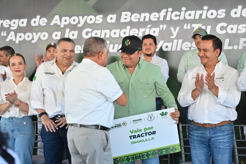 El campo potosino y las y los productores agropecuarios cuentan con un respaldo sin límites, resaltó el Gobernador de San Luis Potosí Ricardo Gallardo Cardona, al entregar más de cuatro mil 460 implementos agrícolas y para ganadería que incluyeron: tractores, molinos, paneles, remolques para ganado y de cama baja, con valor de más de 20 millones de pesos, a municipios de la huasteca potosina.