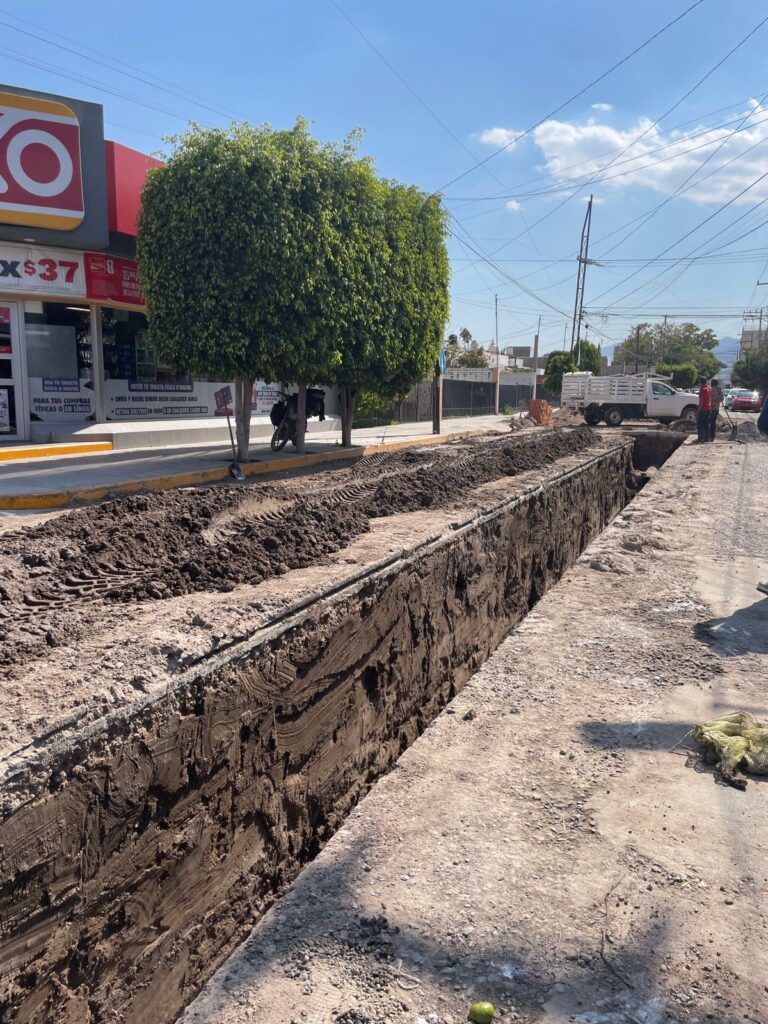 Con avance constante de obras sanitarias previsto para finalizar el año, INTERAPAS comenzó la reposición de tubería en la avenida Mariano Ávila, en la colonia Tequisquiapan.