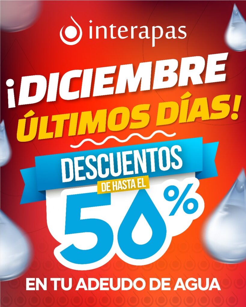 Queda únicamente el mes de diciembre para aprovechar los incentivos fiscales del programa “Acaba tu deuda de una vez” en INTERAPAS, dirigido a usuarios domésticos y comerciales con adeudos de agua y drenaje.