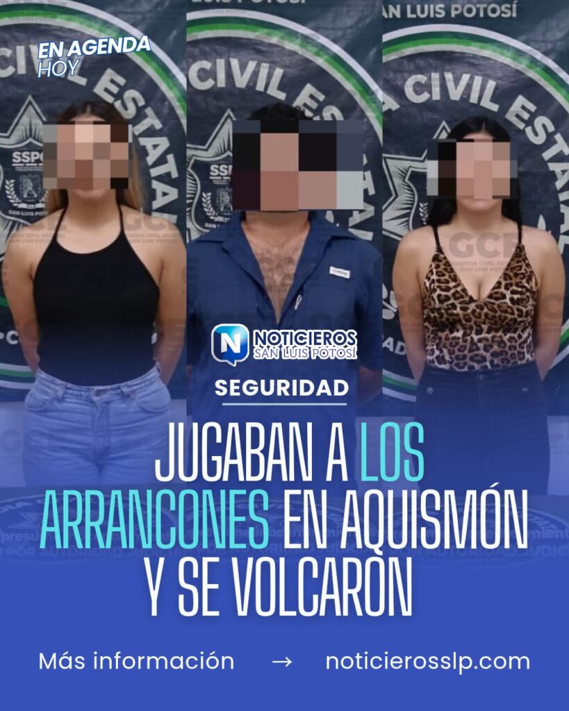 JUGABAN A LOS ARRANCONES EN AQUISMÓN Y SE VOLCARON; FUERON DETENIDOS