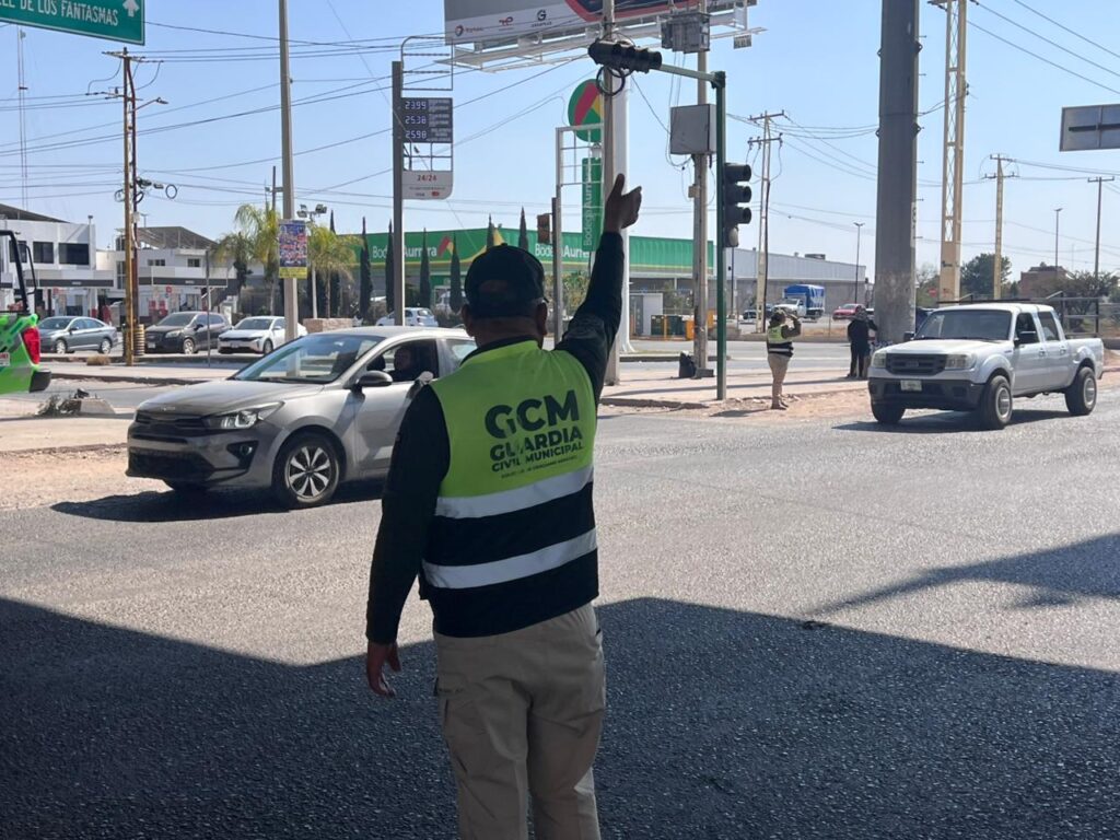 Con el objetivo de garantizar la seguridad vial de automovilistas y peatones y ordenar el tráfico, la Guardia Civil de Soledad de Graciano Sánchez, a través de la Dirección de Seguridad Vial y Movilidad, mantiene la presencia de oficiales para reducir los tiempos de espera y regular la circulación vehicular local y visitante, en la zona donde se construye el puente elevado en el cruce del Bulevar Valle de los Fantasmas y Circuito Potosí Oriente.