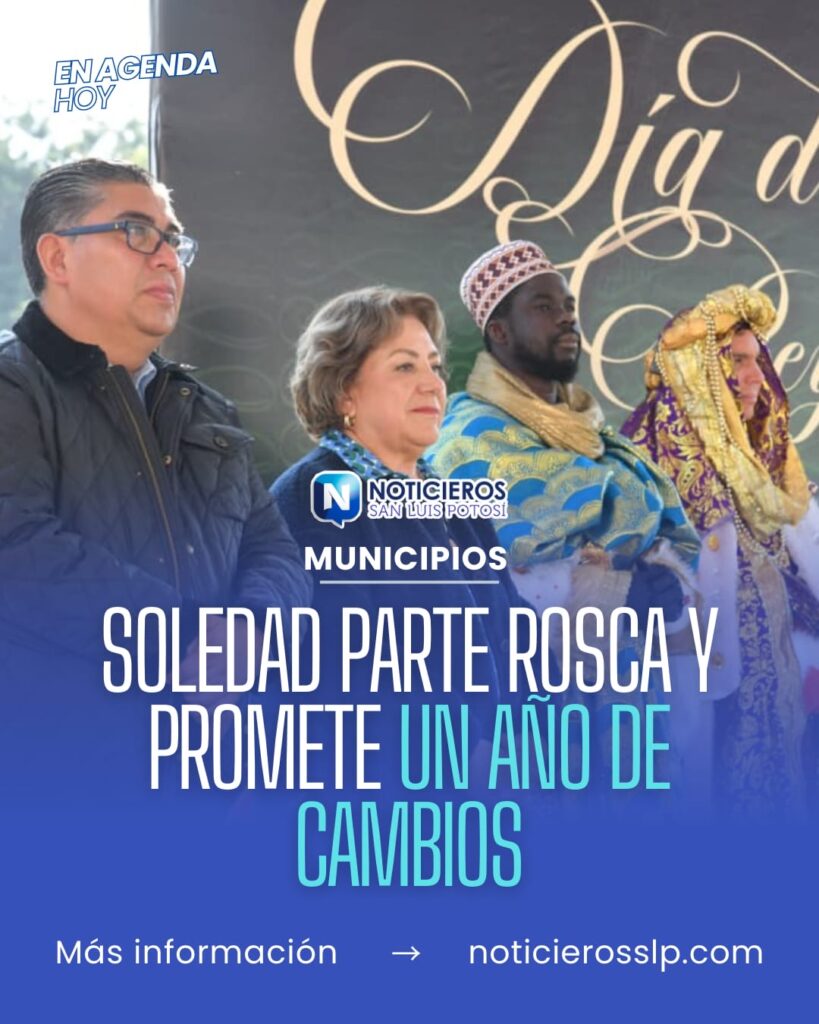 El Ayuntamiento de Soledad de Graciano Sánchez realizó este 6 de enero la tradicional partida de la Rosca de Reyes en la Plaza Principal, un acto que reunió a familias del municipio en torno a una de las celebraciones más arraigadas del calendario popular. La actividad formó parte de las acciones impulsadas por la administración local para fortalecer la convivencia comunitaria.