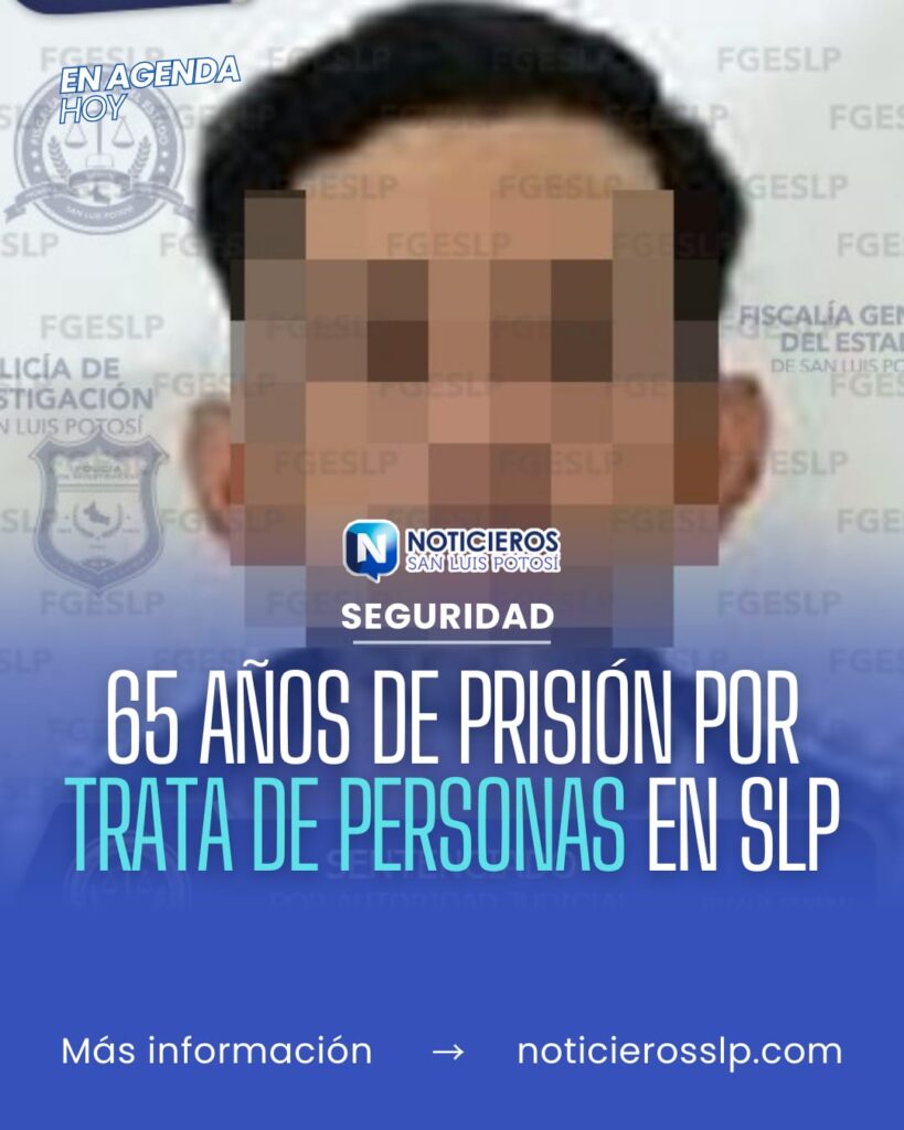 La Fiscalía General del Estado de San Luis Potosí (FGESLP) informó que, obtuvo una pena de 65 años, 7 meses y 15 días de prisión en contra de César Alejandro “N”, por su responsabilidad en los delitos de trata de personas en su modalidad de explotación sexual agravada, así como trata de personas en la modalidad de trabajo forzado agravado.
