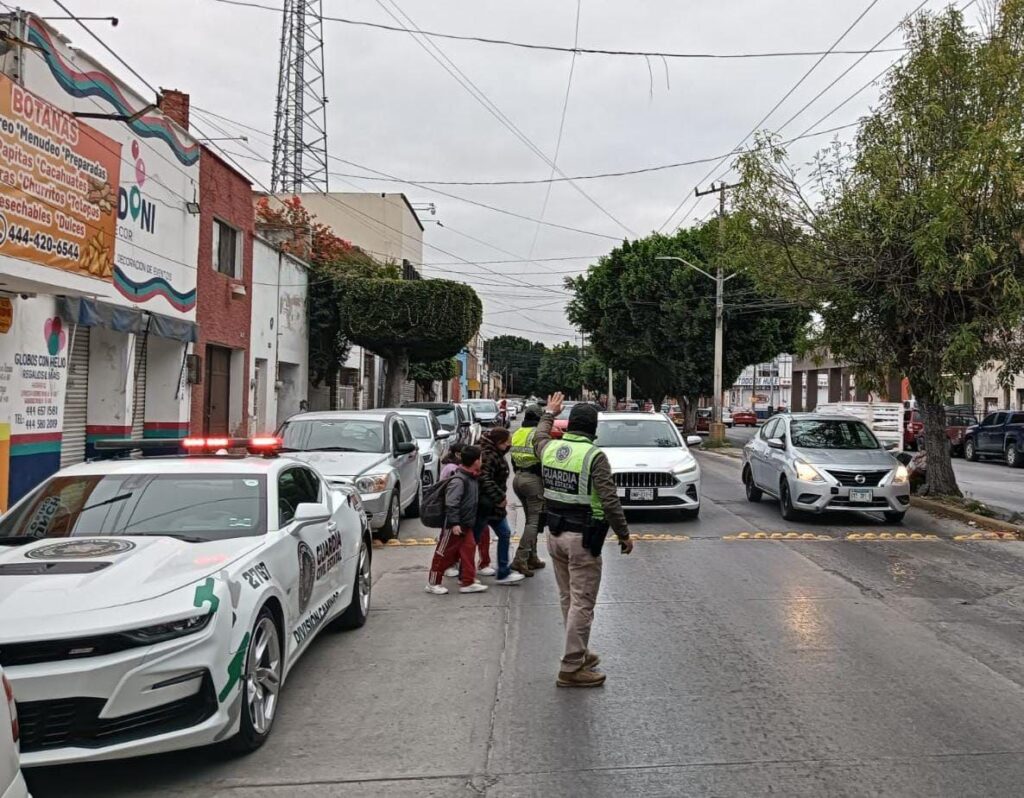 La Guardia Civil Estatal (GCE), en coordinación con la Secretaría de Educación del Gobierno del Estado (SEGE), mantiene firmes las acciones de proximidad, prevención y concientización en los planteles educativos, como parte del Plan Integral de Seguridad. En cumplimiento con la instrucción del Gobernador Ricardo Gallardo Cardona la dependencia fortaleció los programas dirigidos a la comunidad educativa, docentes y padres de familia, los cuales ya se encuentran en marcha con el regreso a clases.