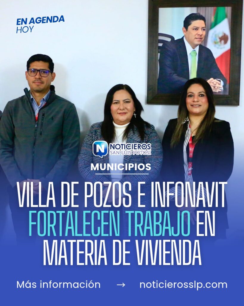 El delegado del Infonavit en San Luis Potosí, Adán Romero Esparza, y la Presidenta Concejal de Villa de Pozos acordaron colaborar de manera conjunta en la elaboración de un Plan de Ordenamiento Territorial, así como en el desarrollo de un plan parcial para el municipio, además de realizar un análisis del término ordenativo, con el propósito de establecer lineamientos claros que permitan un crecimiento urbano planificado, sostenible y acorde a las necesidades actuales y futuras de Villa de Pozos.