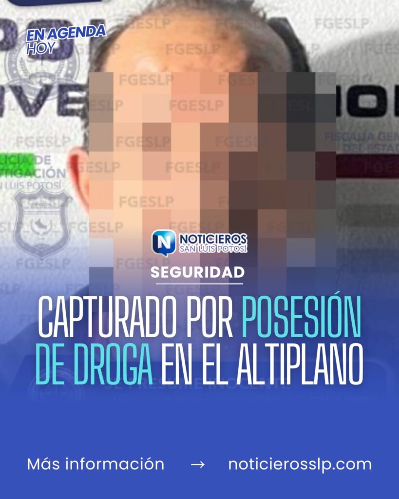 La Fiscalía General del Estado de San Luis Potosí dio cumplimiento a una orden de aprehensión emitida por la autoridad judicial en contra de Edgar “N”, de 51 años de edad, por su probable intervención en el delito contra la salud, en su modalidad de narcomenudeo con la variante de posesión simple en el Altiplano potosino.