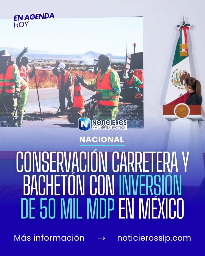La Presidenta de México, Claudia Sheinbaum Pardo, informó que en 2026 el Programa Nacional de Conservación de Carreteras y Bachetón tendrán una inversión de 50 mil millones de pesos (mdp) para atender 18 mil kilómetros (km) de la Red Carretera Federal generando 100 mil empleos en todo el país.