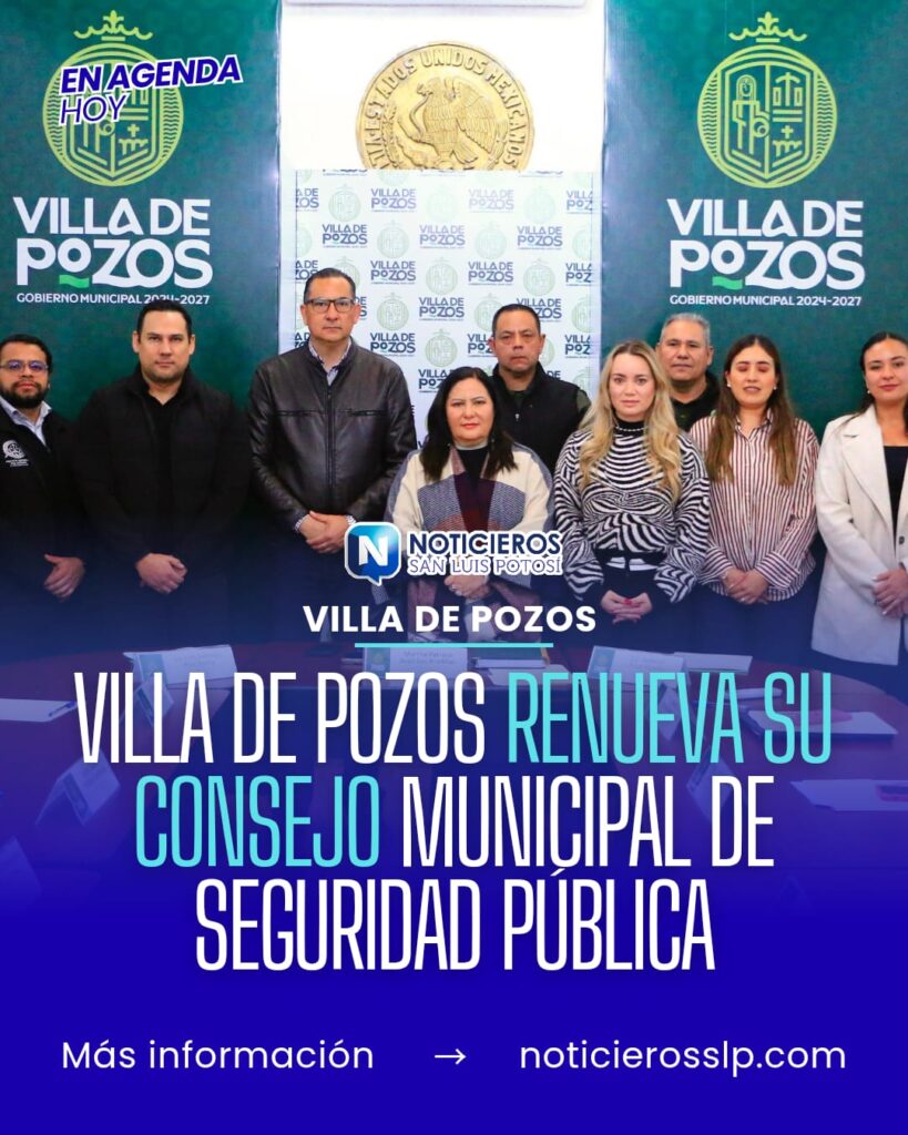 Con el objetivo de coordinar, planear y supervisar estrategias orientadas a la protección de las y los habitantes del municipio, el Gobierno Municipal de Villa de Pozos llevó a cabo la renovación del Consejo Municipal de Seguridad Pública, en el cual la Presidenta Concejal, Paty Aradillas Aradillas, tomó protesta a las y los integrantes, que esta representado por los distintos órdenes de gobierno para fortalecer el trabajo conjunto en materia de seguridad.