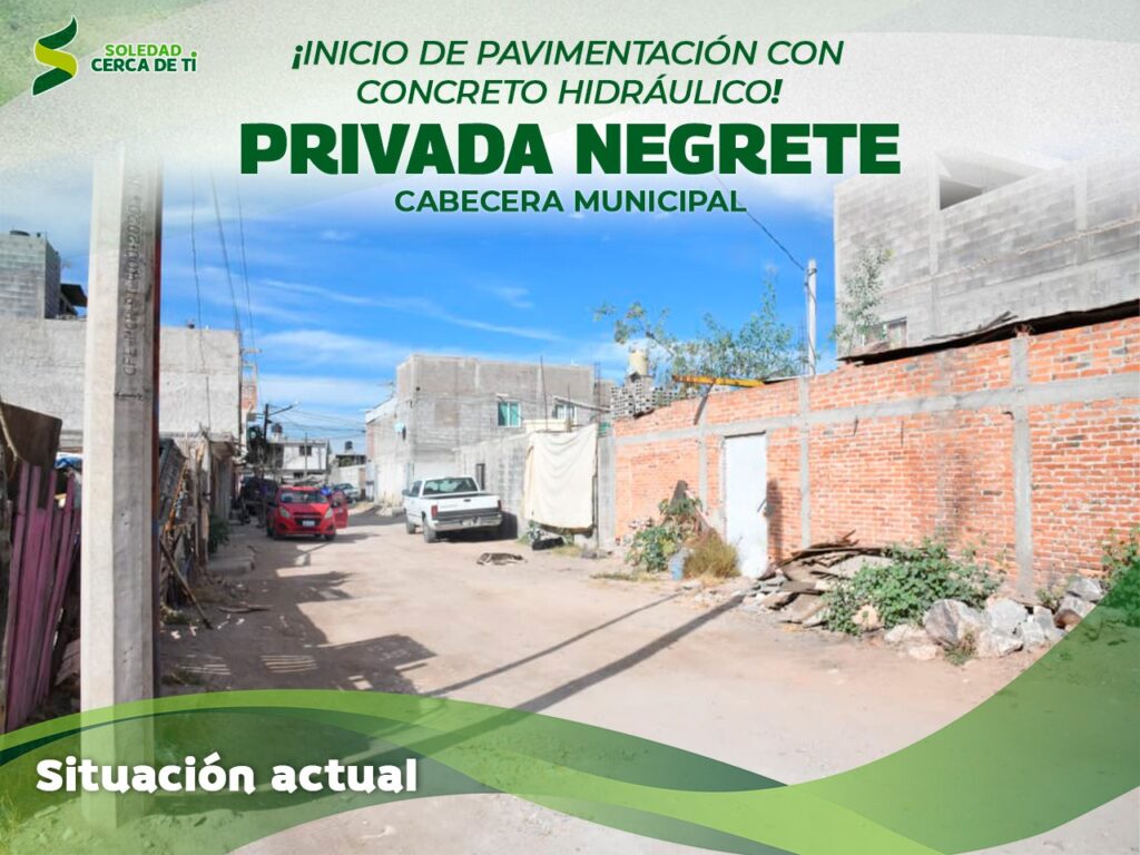 Durante décadas, las familias de la privada Negrete en la cabecera municipal de Soledad de Graciano Sánchez, aprendieron a convivir con el lodo, las inundaciones y el drenaje a cielo abierto como parte de su rutina diaria, cada temporada de lluvias significaba preocupación, calles intransitables y niños obligados a permanecer dentro de casa; hoy, ese escenario comienza a transformarse en esperanza y emoción, con una intervención integral que contempla pavimentación con concreto hidráulico, agua potable, drenaje sanitario, banquetas, guarniciones y alumbrado, además del entubamiento del canal de aguas residuales.