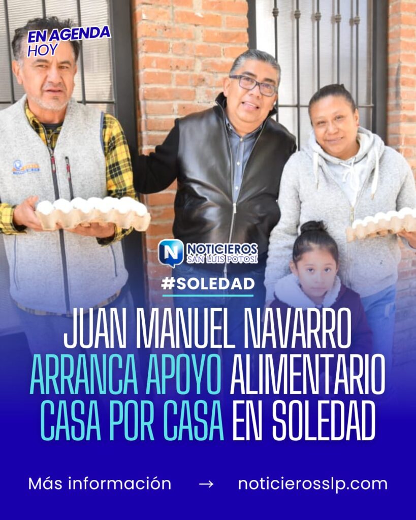 Juan Manuel Navarro Muñiz, Alcalde de Soledad de Graciano Sánchez, dio inicio hoy a la entrega de un nuevo programa alimentario emergente, diseñado para fortalecer el plan nutricional de las familias soledenses, especialmente de niñas y niños, mediante la distribución mensual y casa por casa de huevo como alimento básico de alto valor nutritivo, a fin de mantener un gobierno cercano, que atiende de manera directa las necesidades más sensibles de la población.