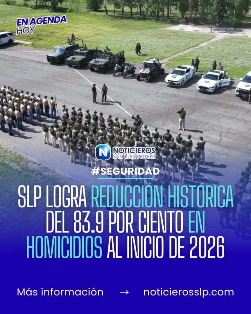 SLP LOGRA REDUCCIÓN HISTÓRICA DEL 83.9 POR CIENTO EN HOMICIDIOS AL INICIO DE 2026