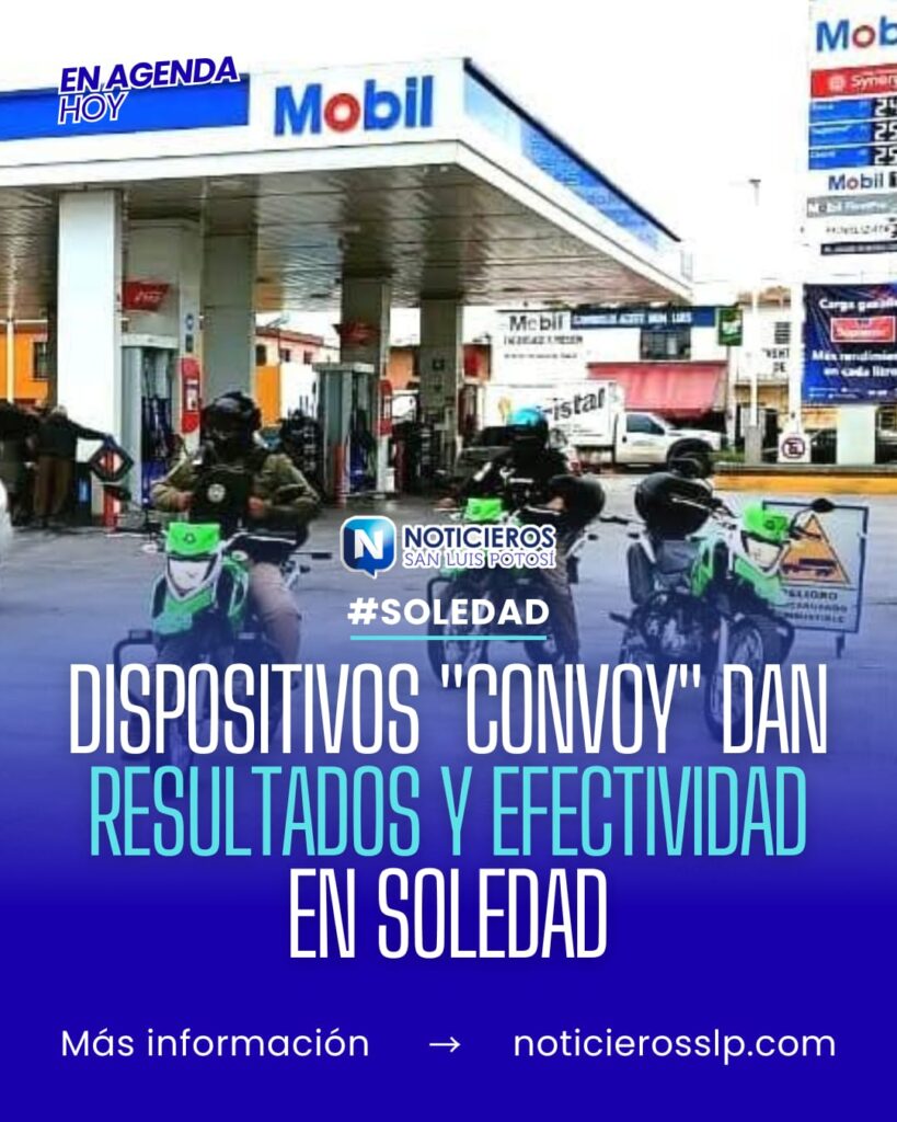 Añadió que esté dispositivo Convoy arrancó la semana pasada, y esta semana ya dio comienzo con apoyo de la Guardia Civil Estatal, Guardia Nacional y los grupos motorizados y Fuerzas municipales de la Guardia Civil Municipal de Soledad, para hacer presencia en todos los sectores del municipio: «la gente lo agradece, al tener a elementos de seguridad al alcance para un auxilio; la presencia constante disuade delitos y aumenta la confianza ciudadana».
