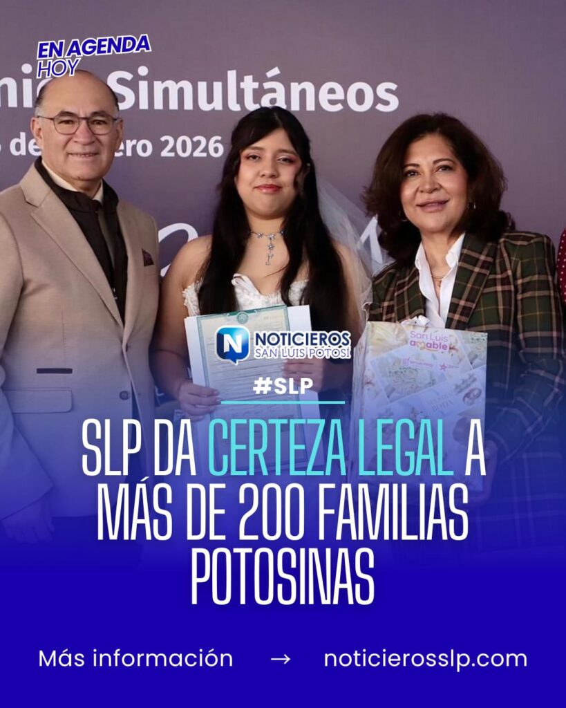 En un acto celebrado en la Plaza de Armas de San Luis Potosí, 217 parejas contrajeron matrimonio civil de manera simultánea. La ceremonia, denominada ‘Da el sí con la Familia’, contó con la presencia del presidente municipal Enrique Galindo Ceballos y la presidenta del DIF Municipal, Estela Arriaga Márquez, quienes actuaron como testigos de honor.