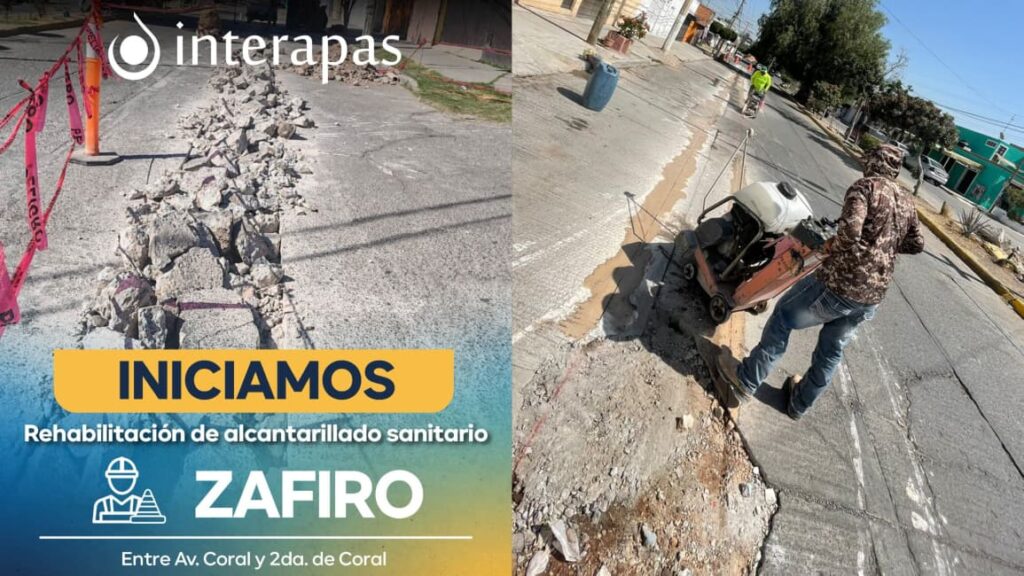 El organismo operador Interapas inició trabajos de rehabilitación sanitaria en la calle Zafiro, ubicada entre la avenida Coral y la Segunda de Coral, en la colonia Valle Dorado, al oriente de la capital potosina. La intervención, catalogada como de alto impacto social, responde a solicitudes vecinales para mejorar las condiciones del sistema de drenaje en el sector.