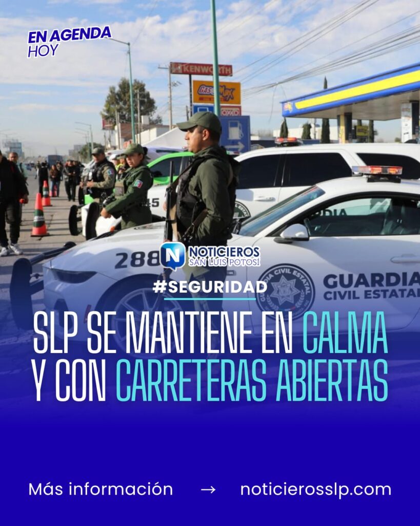 El Secretario de Seguridad y Protección Ciudadana del Estado, Jesús Juárez Hernández, informó que San Luis Potosí se mantiene en condiciones de tranquilidad, sin registro de eventos de inseguridad y con operación normal en todo su territorio. Las autoridades confirmaron que tanto las carreteras de cuota como las vías libres se encuentran abiertas y con circulación fluida.